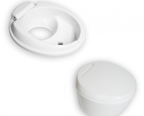 The Arwinger lid in a slim, space-saving design with snap-in function and the corresponding seat complete the conversion. You have made a separation toilet out of your chemical toilet without any damage to the fixtures or the sealing of your bathroom.